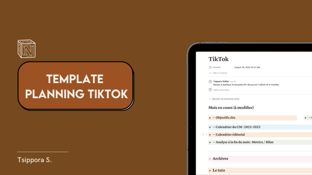 Si tu souhaites t'organiser dans ta planification de contenu pour TikTok, ce template renouvelable est fait pour toi.